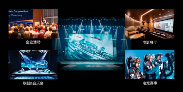 此外,LED屏幕讓電影院不再是一個黑色關燈的世界,為影院探索了更多商業模式可能性,如可在非觀影時間可引進劇場、會場等多元業態,如影片發布會、電競比賽、賽事轉播、企業活動、音樂會直播等,成為一個多業態的復合商業體場景,以擴大影院創收機會。
