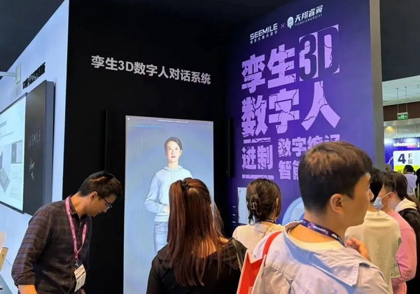 首先,由視美樂超短焦系列投影機SML- SF500展示的3D孿生數(shù)字人對話系統(tǒng),無疑是本次展會的一大亮點。將最尖端的3D渲染技術(shù)和人工智能算法,通過激光科技呈現(xiàn)于墻面,并實現(xiàn)觀眾與數(shù)字人的實時互動對話。這一方案不僅展示了視美樂在人工智能領域的超前布局,也為未來的人機交互呈現(xiàn)方式提供了新的可能。