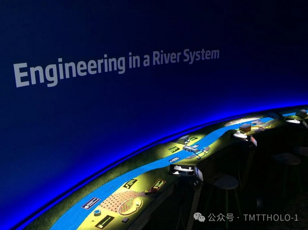 《河流系統》沉浸式場景互動沙盤,通過投影與識別技術,將展臺打造為栩栩如生的沉浸式河流“場景桌”。