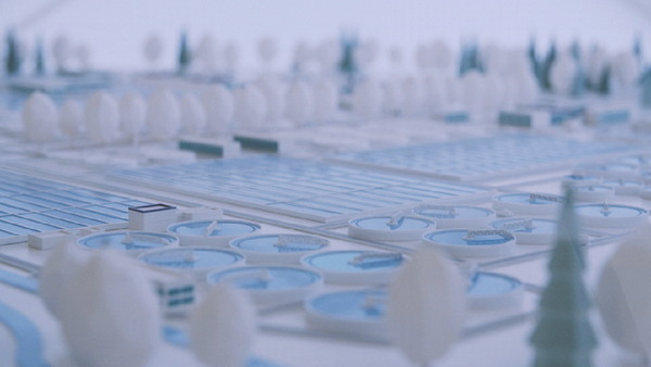 模型后面的半圓形墻面,運用投影展示信息,投影內容與觸摸屏聯動。投影展示了水處理和廢物處理的流程鏈。且有助于向站在一定距離外的參觀者傳遞信息。