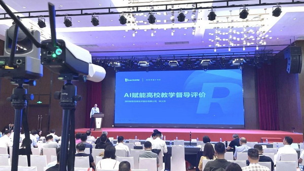論壇現(xiàn)場,會場內(nèi)座無虛席,演講嘉賓以新一代信息技術(shù)為核心,緊密聯(lián)系實際,展開了內(nèi)容豐富、視角獨特的技術(shù)交流和經(jīng)驗分享,為推動教育變革提供了新思路、新方案和新方向,贏得了現(xiàn)場陣陣掌聲。深圳銳取市場總監(jiān)林義蘇以“AI賦能高校教學(xué)督導(dǎo)評價”為主題,深入探討AI技術(shù)在教育行業(yè)的創(chuàng)新應(yīng)用與融合發(fā)展。