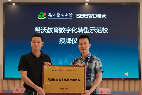 5月23日,希沃與重慶市沙坪壩區樹人崇文小學校(下稱:樹人崇文小學)進行了教育數字化轉型示范校合作簽約授牌儀式。樹人崇文小學副校長潘飛、希沃重慶子公司總經理袁杰等出席活動并簽署校企合作協議。