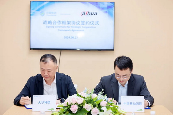 近日,大華股份與中國移動國際有限公司(以下簡稱“中移國際”)簽署戰(zhàn)略合作協(xié)議。中移國際董事長兼行政總裁王華、董事兼行政副總裁林二維,大華股份董事張曉明等雙方領導出席簽約儀式。