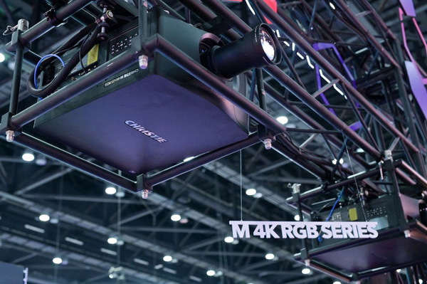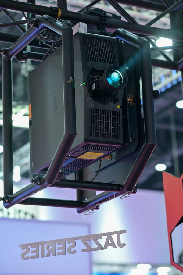 旗艦產(chǎn)品 Griffyn 系列純激光投影機(jī)也在展會(huì)上展示了折疊幕融合顯示,亮度高達(dá) 36,500 流明,色彩表現(xiàn)力是傳統(tǒng)投影機(jī)的兩倍,適合高標(biāo)準(zhǔn)大型應(yīng)用,同時(shí)采用單相電源降低成本。