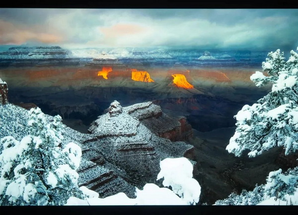 烏云、陽光、山丘與白雪,層次非常多樣,畫面的細膩非常銳利,尤其烏云與遠山的立體感非常強烈。