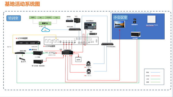 基地舉辦的培訓活動中,需要清晰錄制活動主持人、培訓學生以及PPT電腦的總計3路實時畫面;且需要3路信號源可以任意組合畫面,通過錄播USB信號源輸出到電腦,作為騰訊會議的信號源使用;整個培訓活動需要錄制,錄制的視頻文件后期可回放,可編輯;培訓中也要同時可以做到多平臺直播;整個操作系統需要簡單易上手。