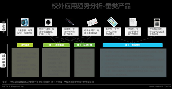 不同于校內完整、閉環的學習場景,校外的學習場景和痛點需求更加分散,除了綜合類的學習平板外,各類暢銷的垂直品類無外乎均找到了有效的細分場景,傳統品類中有專注于外出定位、溝通的兒童手表,專注于單詞和句子翻譯的詞典筆等,創新品類中有專注于聽力閱讀、口語練習的聽力寶、專注于護眼功能下刷題練習的學練機等。在具備了有效細分場景這一必要條件之后,尋找到適應時代發展、匹配品類特點的渠道則成為關鍵的下一步。在線上渠道未興起的時代,兒童手表更依賴線下商超和專賣店;隨著電商平臺、私域社群的發展,更低客單價、更易流轉的錯題打印機、詞典筆、電子單詞卡流行起來;短視頻時代,直播講解、公域引流更適合新品類的推廣,成為聽力寶、學練機等創新品類的關鍵銷售渠道。未來,教育智能硬件仍需要進一步深挖更多的細分場景,并結合適配產品特色和時代特征的渠道,以打造特定場景的爆款產品。
