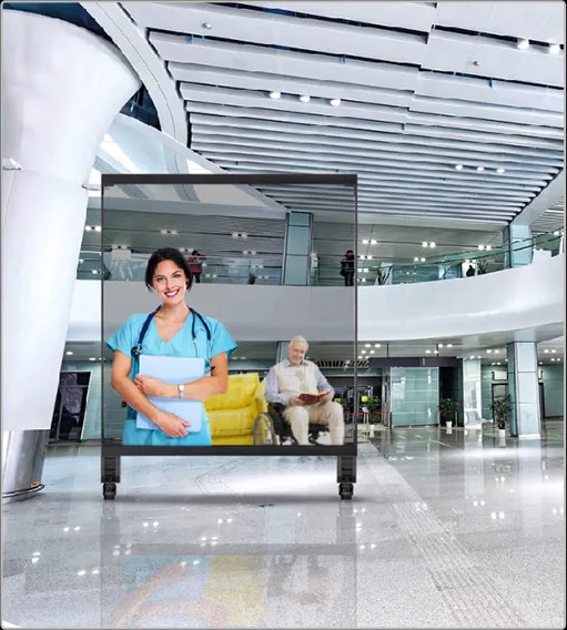 全息透明屏定位于高端商用和互動娛樂市場,致力于為客戶提供極致的視覺體驗和獨特的品牌展示方式。它不僅適用于零售行業的高端櫥窗展示,還能在各種商業活動、互動娛樂中展現其無與倫比的魅力。