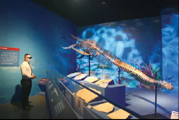 深圳博物館“向海之旅——重返海洋的爬行動物”古生物專題展覽針對重點展品“蛇頸龍”開發了配套的AR項目,觀眾佩戴AR眼鏡對準文物,就能瞬間看到“復活”的蛇頸龍和它的生活場景。若攝像頭自動識別出現問題,觀眾還可通過語音指令控制AR眼鏡播放相應畫面。