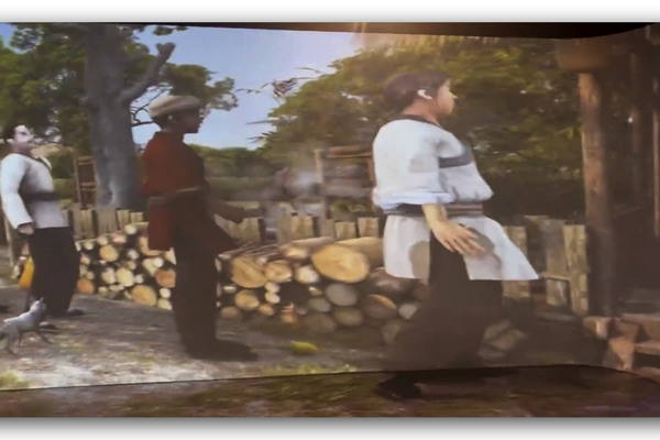 中醫展館全息廳,長7×寬8×高3,投3面墻加地面,總投影面積122平方米,使用12臺奧圖碼激光
