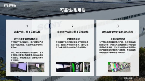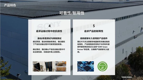 索尼通過嚴格和體系化的耐久性與碰撞測試,來實現產品的可靠性與耐用性;并通過多方面的細致調教確保色彩精準和細節清晰的畫質呈現。