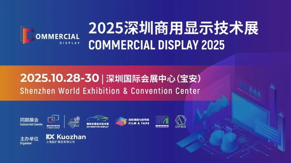 深圳商用顯示技術展(COMMERCIAL DISPLAY)將于2025年10月28-30日在深圳國際會展中心(寶安新館)舉辦,由勵展博覽集團和中國電子視像行業協會公共信息顯示(PID)分會聯合主辦。本屆展會將聯合C-TOUCH & DISPLAY 深圳國際全觸與顯示展、FILM & TAPE EXPO深圳國際薄膜與膠帶展、AUTOMOTIVE WORLD CHINA 深圳國際智能網聯汽車產業展覽會、NEPCON ASIA亞洲電子生產設備暨微電子工業展覽會等六展同期,打造16萬平方米的超級展覽盛宴。