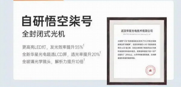 而就在京東方在1LCD投影市場風生水起之際,其老對手華星光電也悄然布局投影上游市場。目前市場上采用華星光電液晶屏的智能投影機有大眼橙C1D等,該產品采用華星光電4.45寸 LCD 屏,自研新一代全封閉式光機、高亮LED燈、