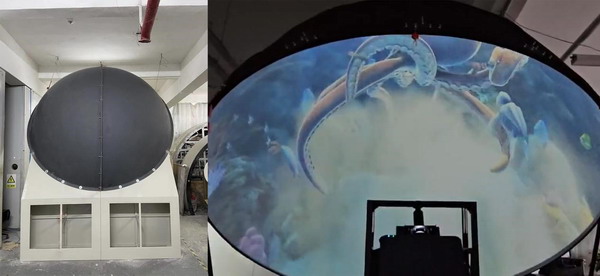1.新穎獨特:不同于普通平面顯示,球幕系統是360°全方位顯示,立體感更足。