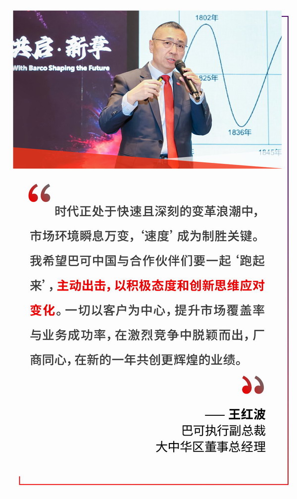 巴可執(zhí)行副總裁、中國董事總經(jīng)理王紅波作巴可中國策略報告,從時代背景、發(fā)展回顧及市場機(jī)遇等維度,深入剖析市場趨勢、產(chǎn)業(yè)現(xiàn)狀與用戶需求,闡述巴可中國的發(fā)展規(guī)劃。