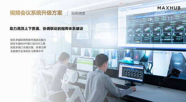 方案已成功應用于交通、應急管理、公共安全等多個領域。例如,在應急指揮領域,MAXHUB 構建支持多級架構多終端接入、跨層級跨地域部門聯動的視頻