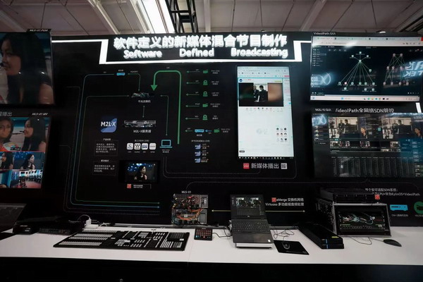 在“軟件定義的新媒體制作”區域,索尼集中重點展出M2L-X基于軟件的現場節目制作切換臺與MLS-X1堆疊式硬件切換臺,系統展示其在軟硬件混合部署、遠程協同制作和高畫質呈現等方面的關鍵能力。