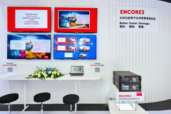 展區中還展示了圖像管理大師系列全新平臺Encore3,通過四個大屏顯示器展現無損原生4K內容處理、最多8路4K輸出以及超低延遲等出色性能,讓觀眾近距離體驗強大的功能與操作的便捷性。