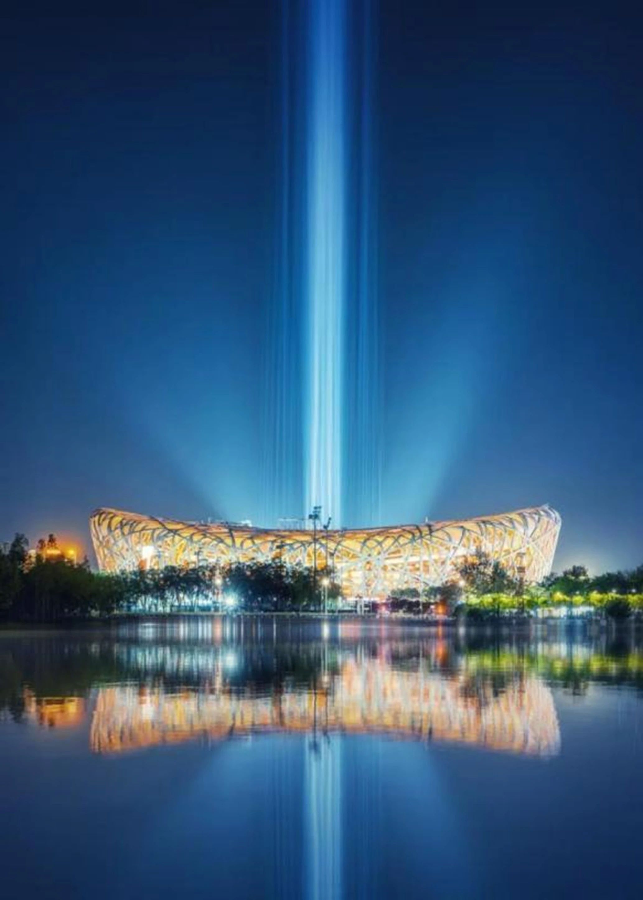 機位設置上,除了主要的中近景機位,還設計了4條軌道、1個地形車、2臺伸縮搖臂、3條飛貓,這些具備大范圍運動的機位,來展現場面和豐富畫面律動。除此之外,還有觀眾區、看臺區的單機來抓取觀眾鏡頭及氛圍鏡頭,在鳥巢頂部還架設了一臺超廣角機位,將鳥巢的整個結構收入鏡頭。