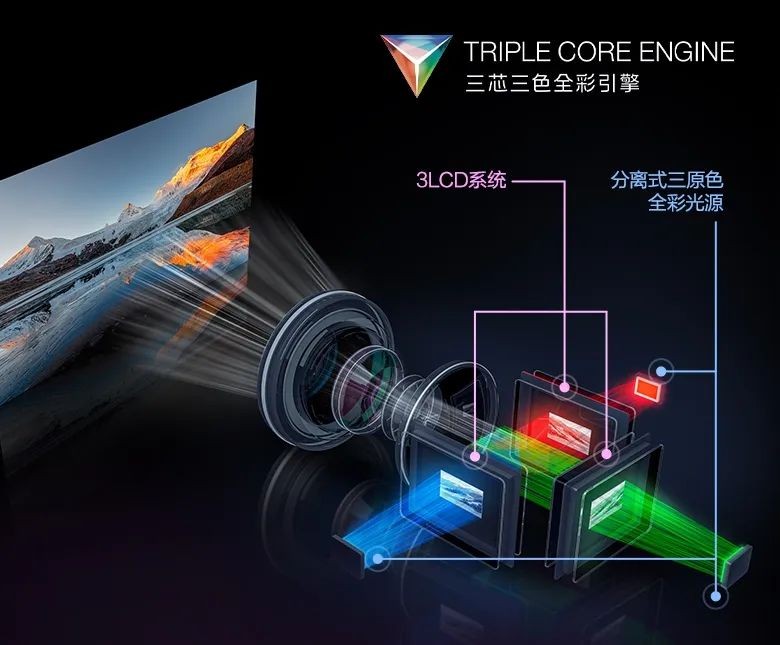 在家用領(lǐng)域,愛普生基于多年來在3LCD技術(shù)領(lǐng)域的深厚積淀,創(chuàng)新推出“Triple Core Engine三芯三色全彩引擎”投影技術(shù),突破性的采用愛普生全新設(shè)計的“三芯片+三色光源”光學(xué)結(jié)構(gòu),通過精準控光、光能循環(huán)和結(jié)構(gòu)優(yōu)化三大核心升級,將光的利用率推向全新高度,使畫面呈現(xiàn)出亮彩平衡、色域一致、明暗均衡的理想效果,重新定義了投影畫質(zhì)新標準。
