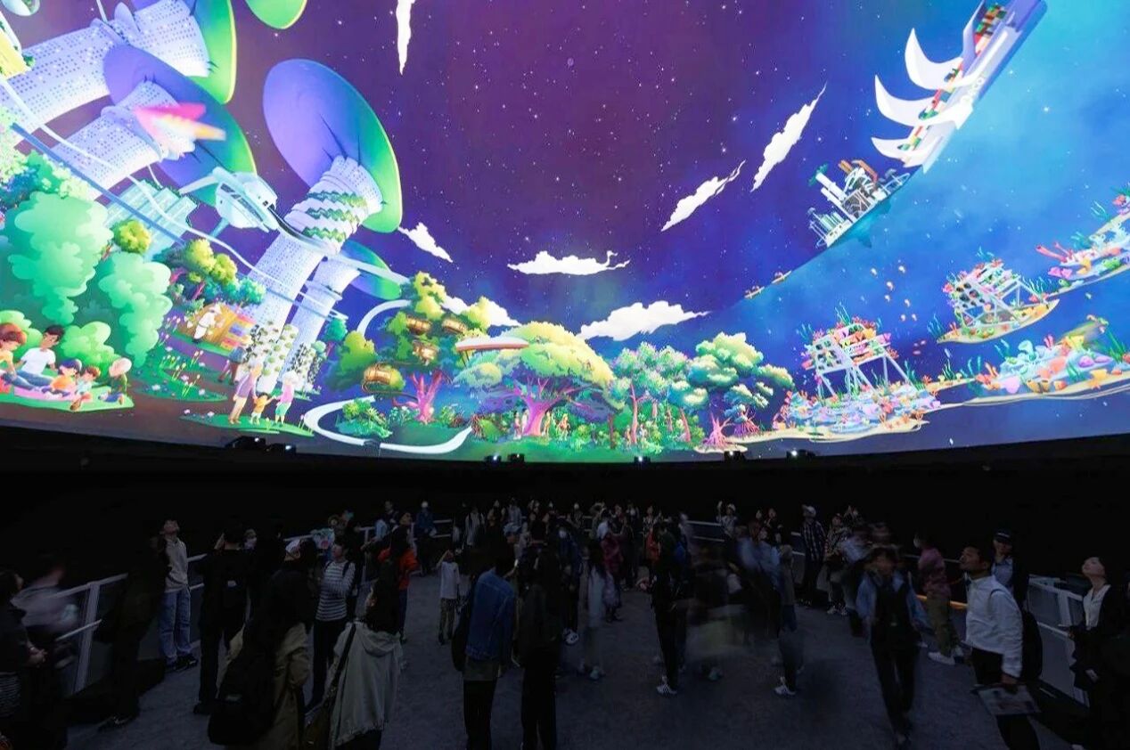 工程投影機(jī),完成了綠色幕墻、夢(mèng)想互動(dòng)穹頂投影等精美展項(xiàng)。