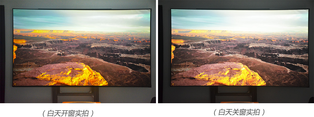DET-C7具有超高對比度,Full HD 1080P全高清投影,細節絲絲分明,即使在白天觀影,畫面仍舊清晰亮麗,幾乎不受環境光干擾,夜晚觀影,效果更佳,給你更高清的觀影快感!從實拍圖可以看出,DET-C7高達3600流明的亮度,使得投影畫面不論是開窗還是關窗,畫面清晰度幾乎不受影響。開窗雖然對畫面有一定影響,但清晰度仍不減,真正實現白天也可真高清。