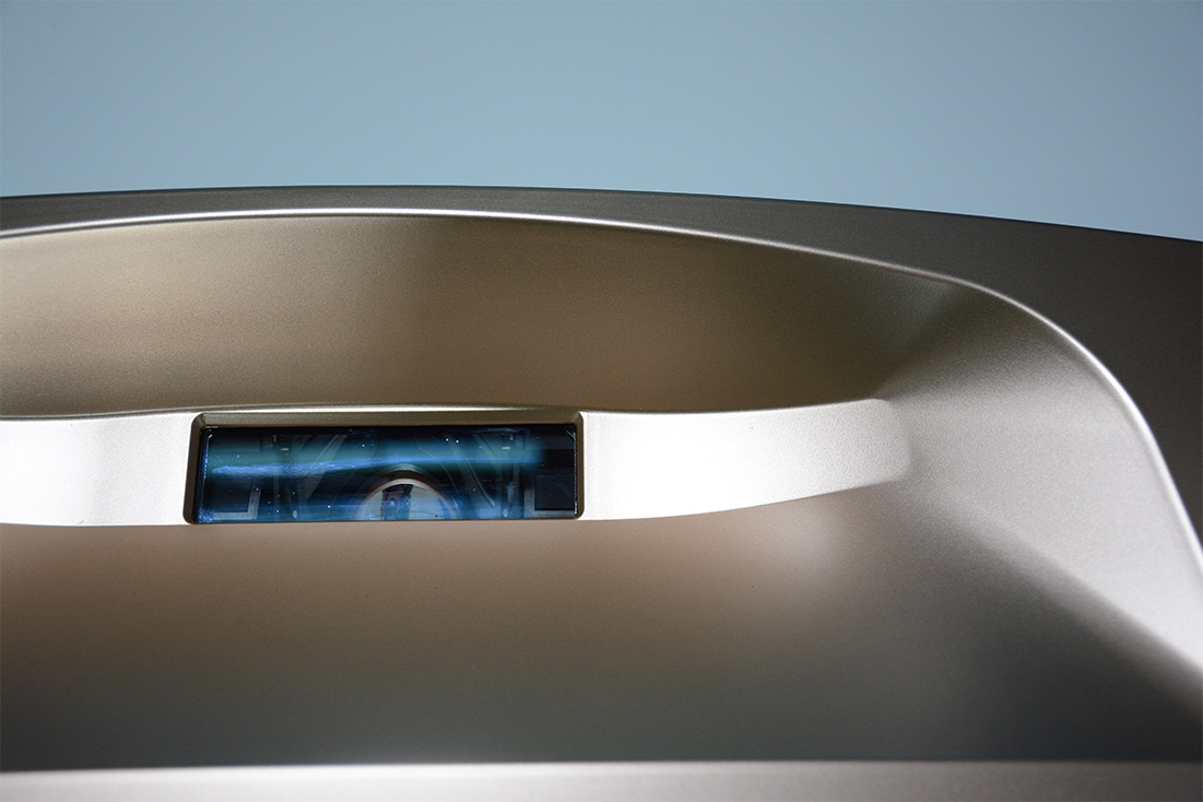 DET-C7在外觀上有種讓人眼前一亮的感覺,相較于市場上普遍暗黑色系的激光電視外觀,C7香檳金的主色調,更顯時尚、大氣、高貴。長條形的外形設計,讓機子顯得不那么笨重,加上白色的搭配色,C7的外觀可以說很養眼了。