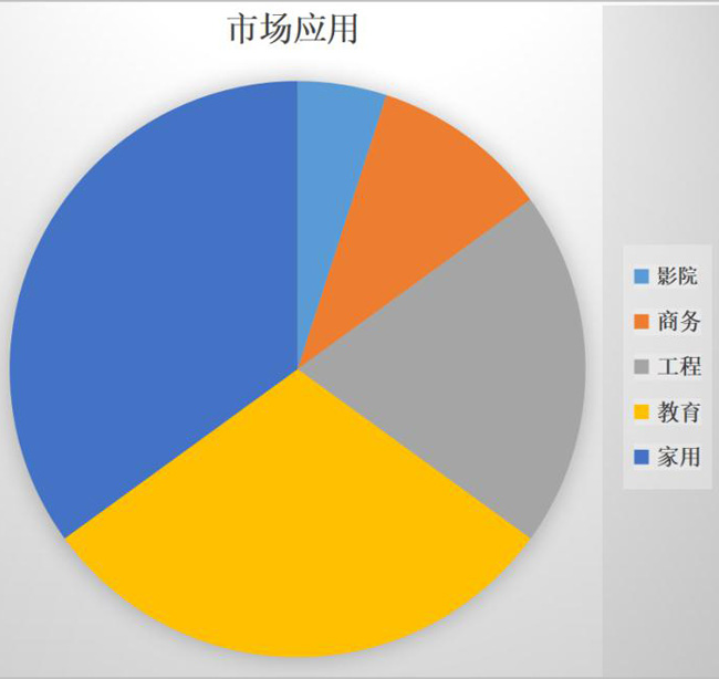 家用智能投影已成為現階段投影領域規模最大的細分市場。在全新技術力量的推動下,家用投影產品繼續朝著平民化、高清化、智能化的方向發展。未來家庭大屏全應用場景下,投影產品也將會進一步向垂直細分領域開拓,新老品牌市場份額的交替,用戶消費分層的運營都將成為促進投影市場發展的核心動力。